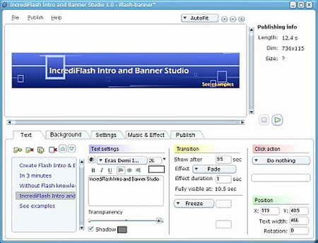 IncrediFlash Intro and Banner Studio能夠方便的製作flash動畫介紹和宣傳條幅,不