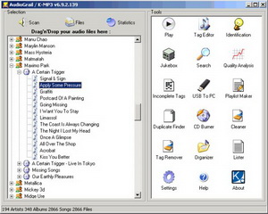 AudioGrail是一款MP3自動更名和標籤編輯工具,它能從internet上的freedb資料